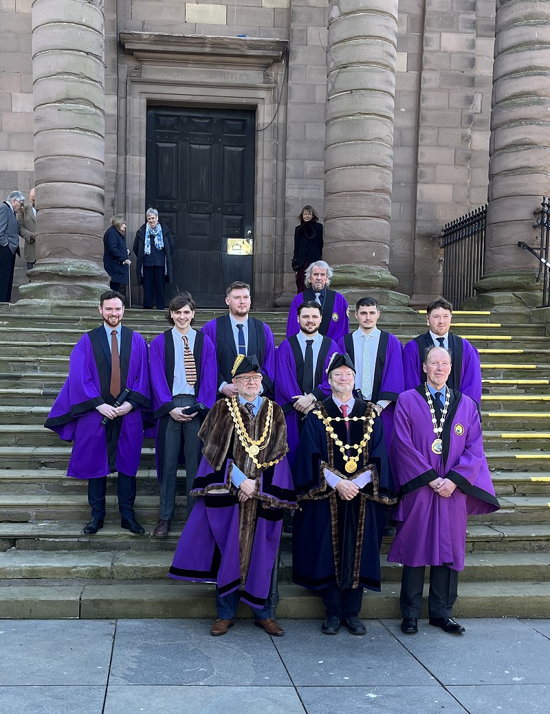 At a ceremony at the Town Hall on Tuesday, 07 April 2026 at 11.00am, six applicants were admitted as a Freeman of Berwick-upon-Tweed. After the ceremony the applicants were photographed on the steps of the Town Hall.